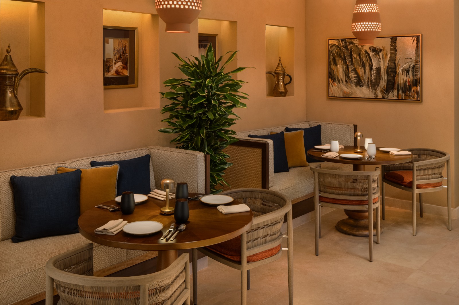 ندعو الضيوف لزيارة مطعم جريد في باب سمحان، فندق لاكشري كوليكشن، الدرعية واستكشاف التقاليد السعودية بحلّة عصرية تمزج ما بين الأصالة والأناقة.