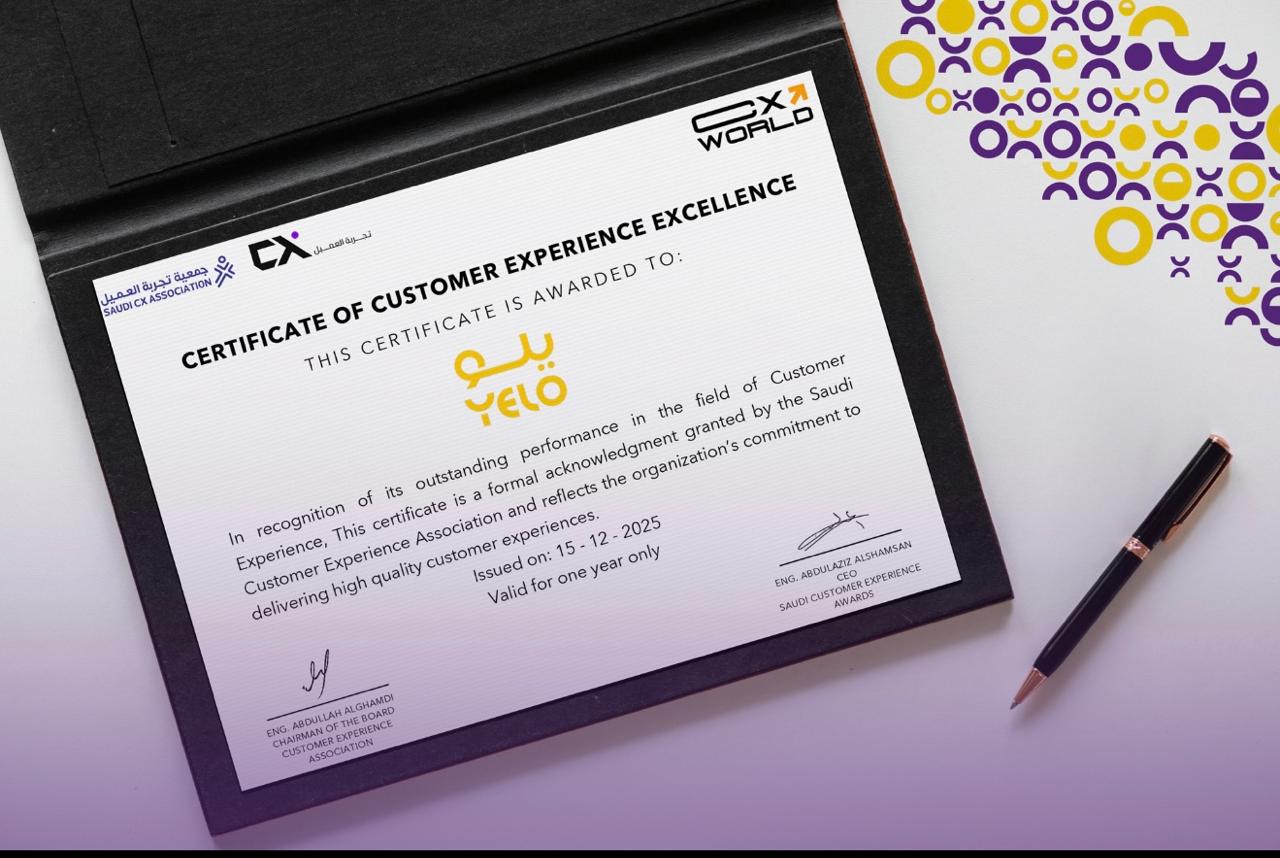 ديسمبر 2025: تأكيدًا على نجاح استراتيجيتها في تطوير خدماتها ووضع العملاء في صدارة أولوياتها، حصلت شركة الوفاق لحلول النقل “يلو” على شهادة التميّز في مجال تجربة العميل المقدّمة من الجمعية السعودية لتجربة العميل، وذلك تقديرًا لجهودها والتزامها بتطبيق أعلى المعايير التي تضمن تقديم تجربة استثنائية لعملائها في كل مرة يستفيدون فيها من خدماتها.